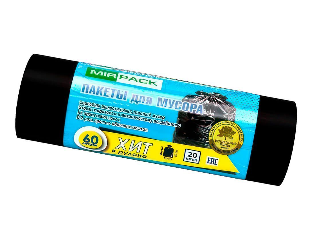 Мешки для мусора 60 л, ароматизированные, черные, в рулоне 20 шт., ПНД, 8 мкм, 800х600 мм, ХИТ, 6020867