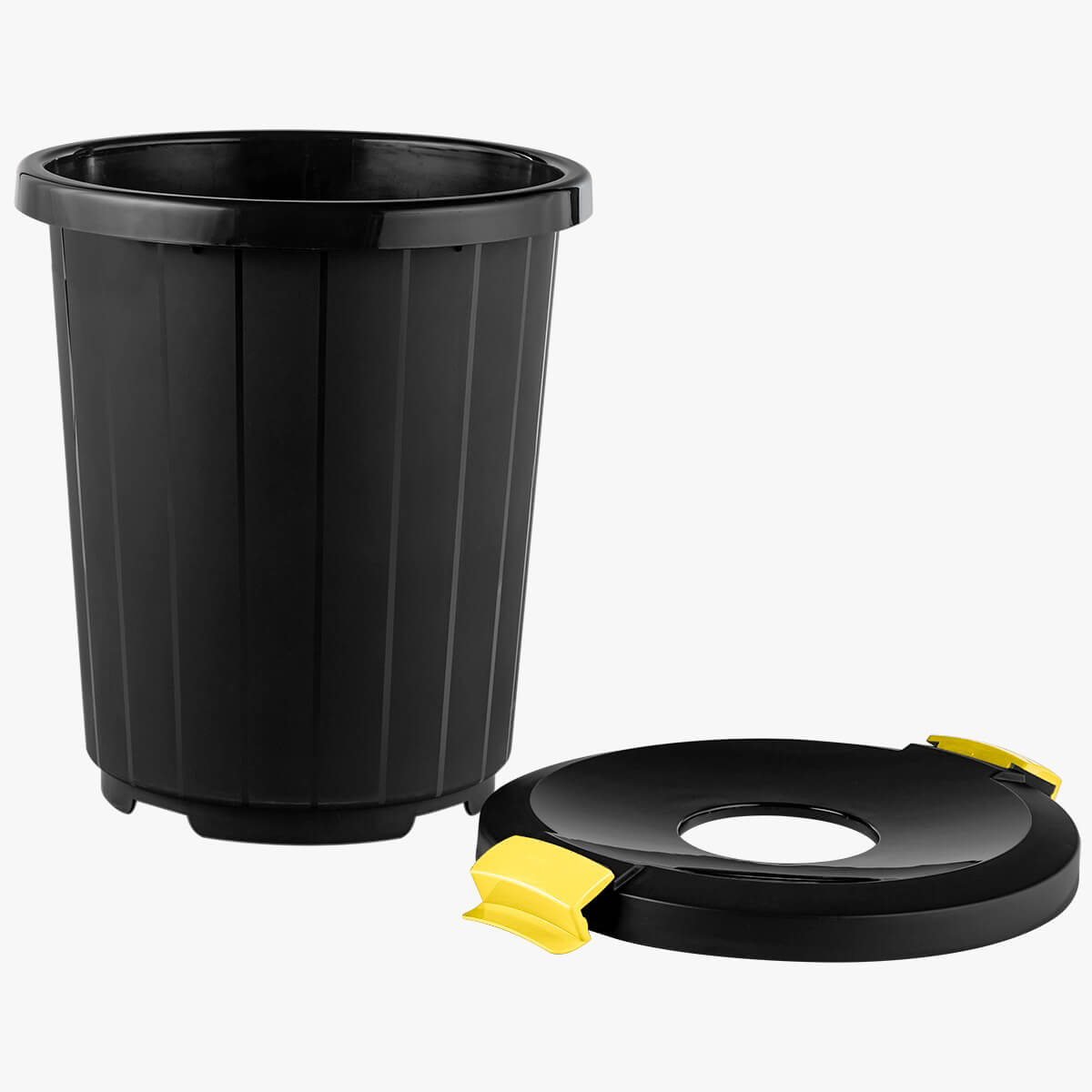 Бак изготовлен из высококачественного пластика с применением передовой технологии цельного литья, что обеспечивает прочность и долговечность. Толщина стенок соответствует стандартам безопасности, а крышка-воронка крепится надежно, гарантируя удержание мусора внутри.