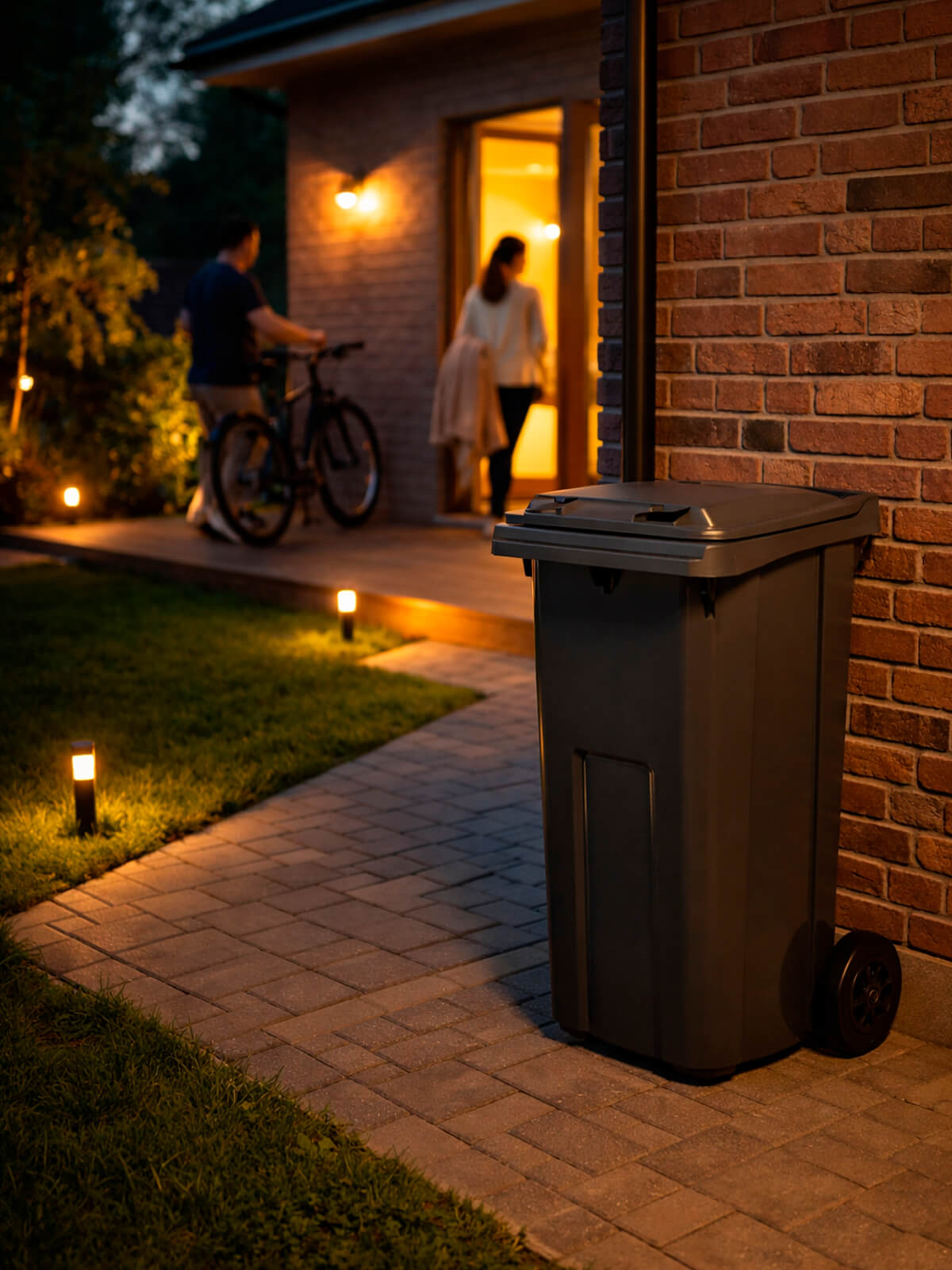 Контейнер изготовлен из первичного ПНД, устойчивого к ударам, морозам, влажности и солнечному воздействию. Колёса позволяют перемещать бак даже по неровной поверхности, а плотно прилегающая крышка предотвращает распространение запахов, попадание дождя и расклёвывание мусора птицами. Совместим со стандартными коммунальными системами как классический евроконтейнер.