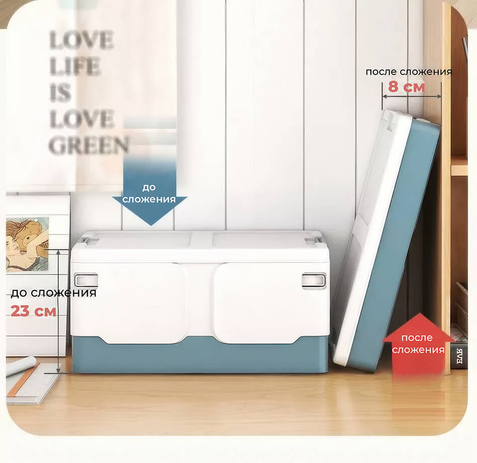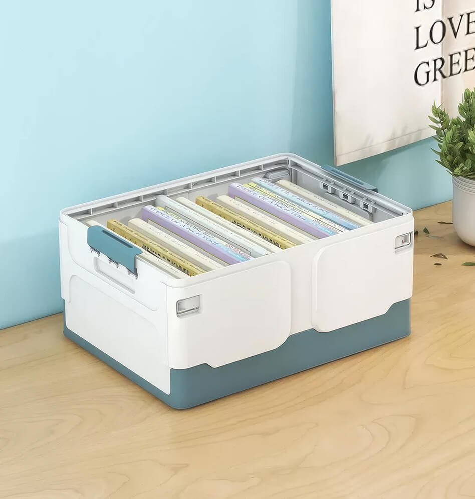 Этот пластиковый складной ящик сочетает в себе прочность, функциональность и современный дизайн. Белые стенки придают ощущение чистоты и простора, а синее дно добавляет глубины и элегантности, создавая гармоничное сочетание. Пластиковый контейнер идеально подходит для хранения одежды, игрушек, документов, мелочей и бытовых принадлежностей.