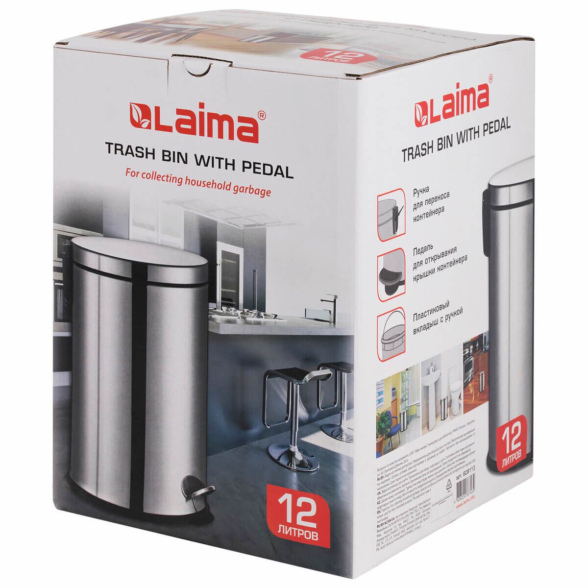С вместимостью 12 литров, это ведро идеально подходит для помещений с средней проходимостью. Педаль облегчает открывание крышки, а плотное прилегание её к корпусу надежно удерживает запахи. Внутренний пластиковый контейнер снабжен удобной ручкой для легкого извлечения.
