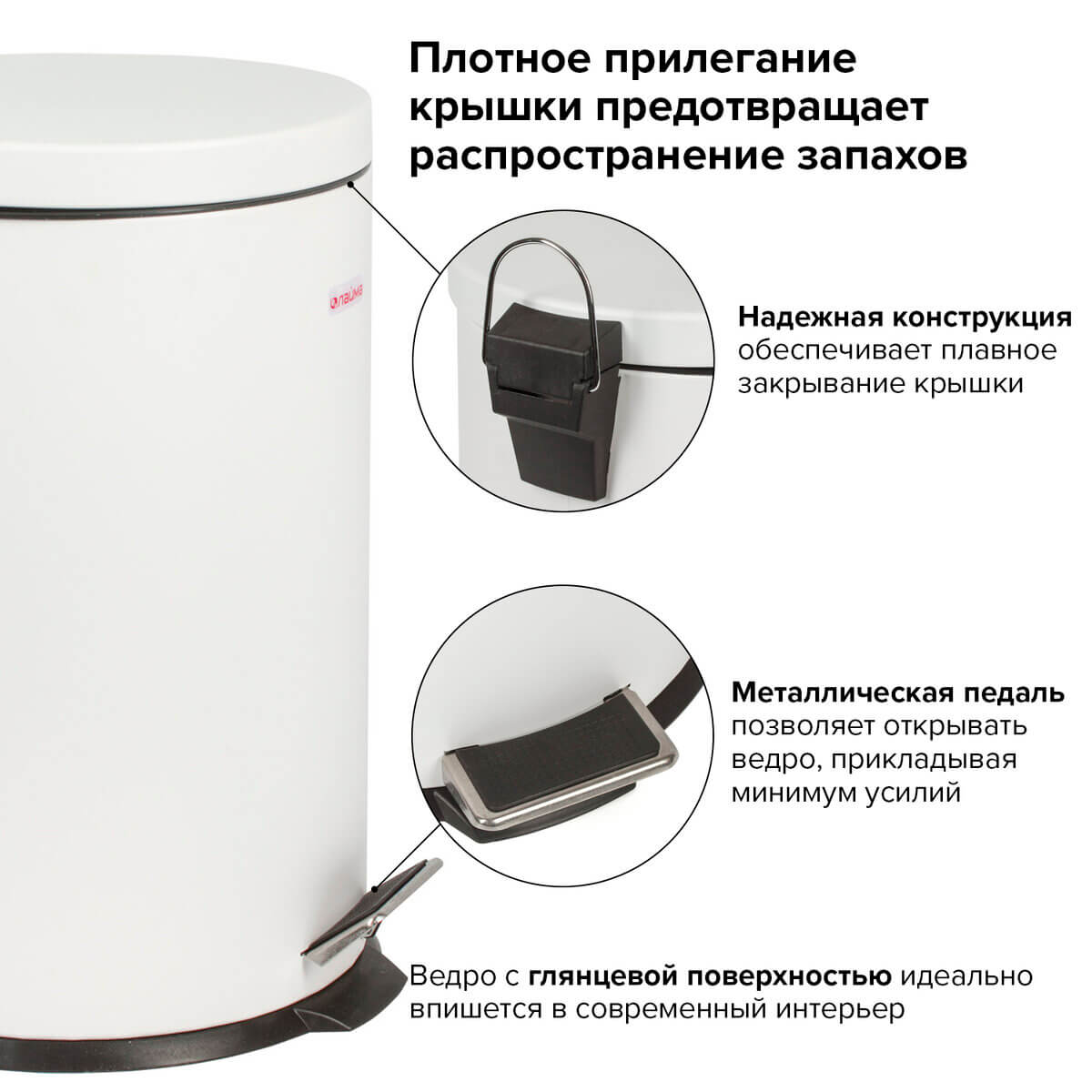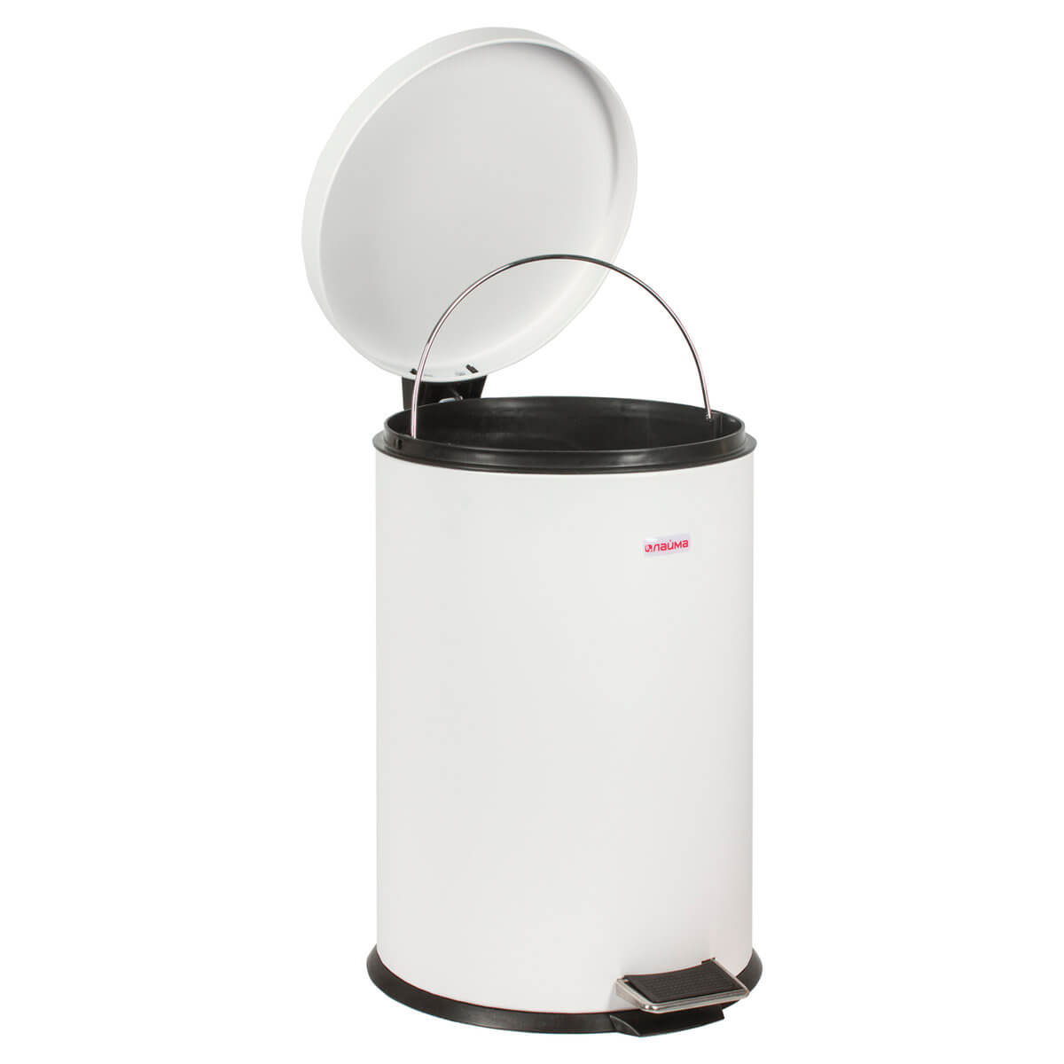 Ведро-контейнер для мусора (урна) с педалью LAIMA Classic, 20 л, белое, глянцевое, металл, со съемным внутренним ведром